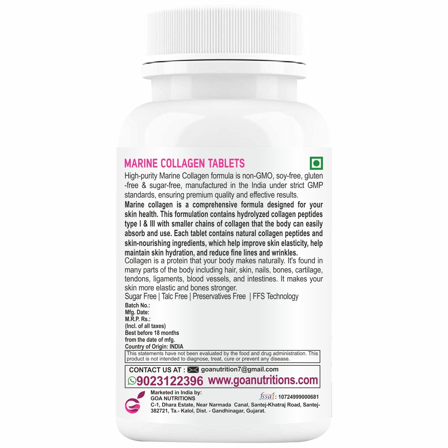 - Without Sugar, Talc, Preservatives