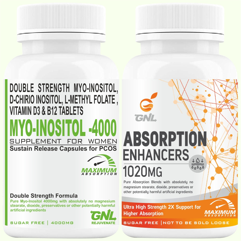 NEED FOR BIOAVAILABILITY ENHANCERS: poor lipid solubility or improper molecular size or both, ultimately resulting in poor absorption and poor bioavailability following oral administration. This Supplement is with absorption enhancers which are functional excipients to improve the absorption of active nutrition. These work together to support Myo- Inositol & D-Chiro-inositol, this active form of Inositols has a 3X better absorption rate in the body compared to conventional supplements.