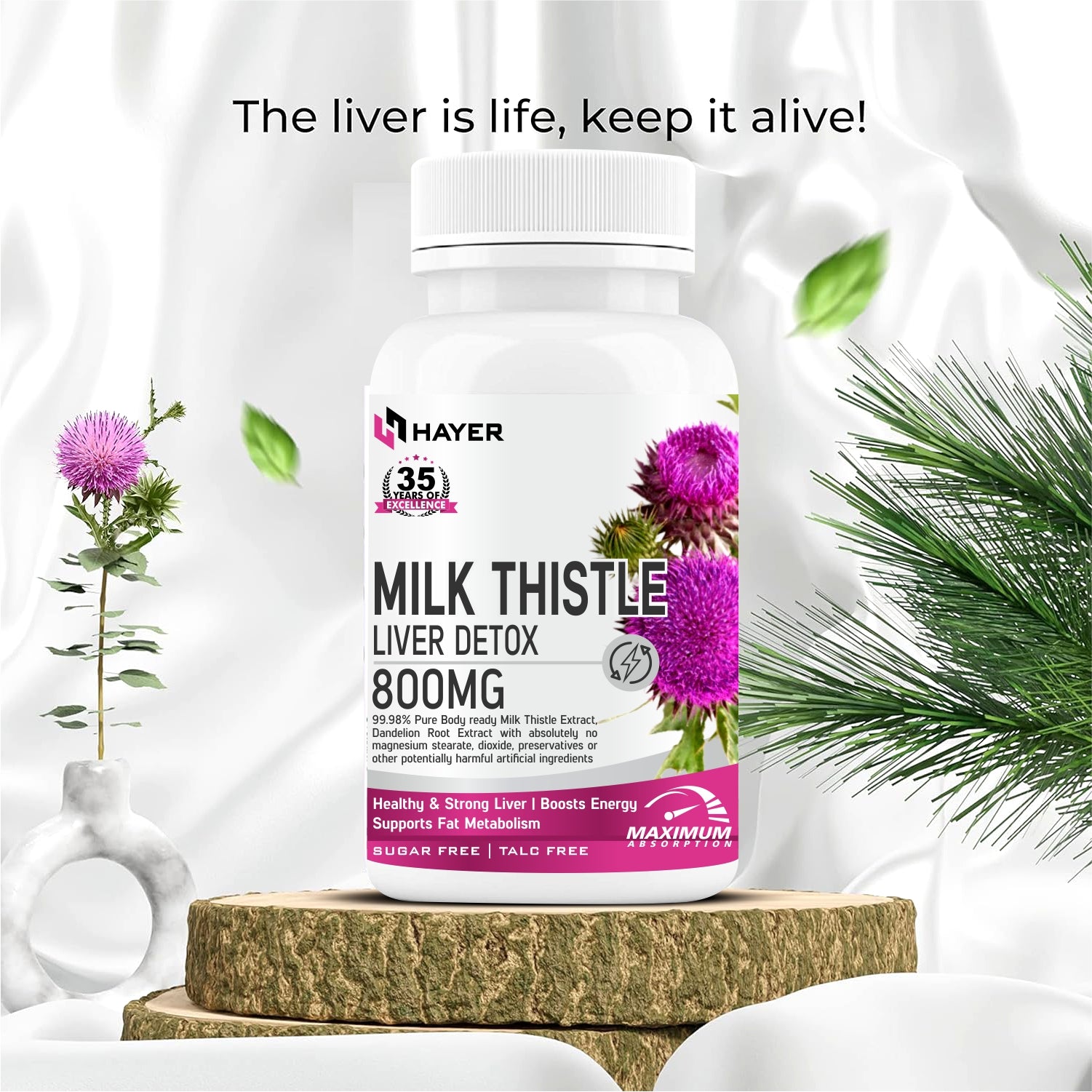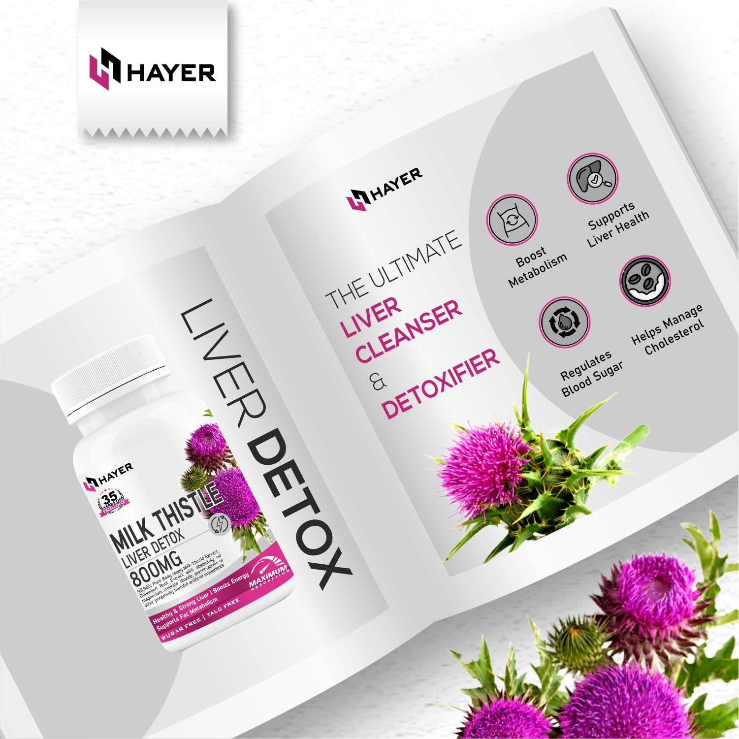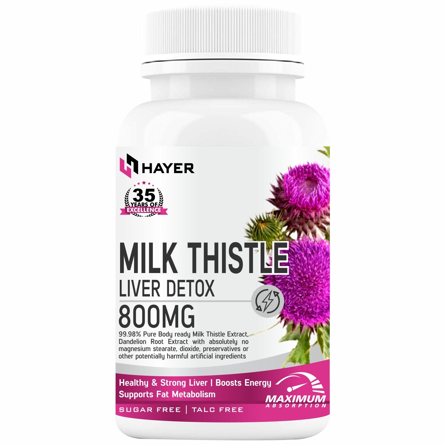 HAYER Milk Thistle Supplements With Dandelion Root Extract 60 Organic Tablets