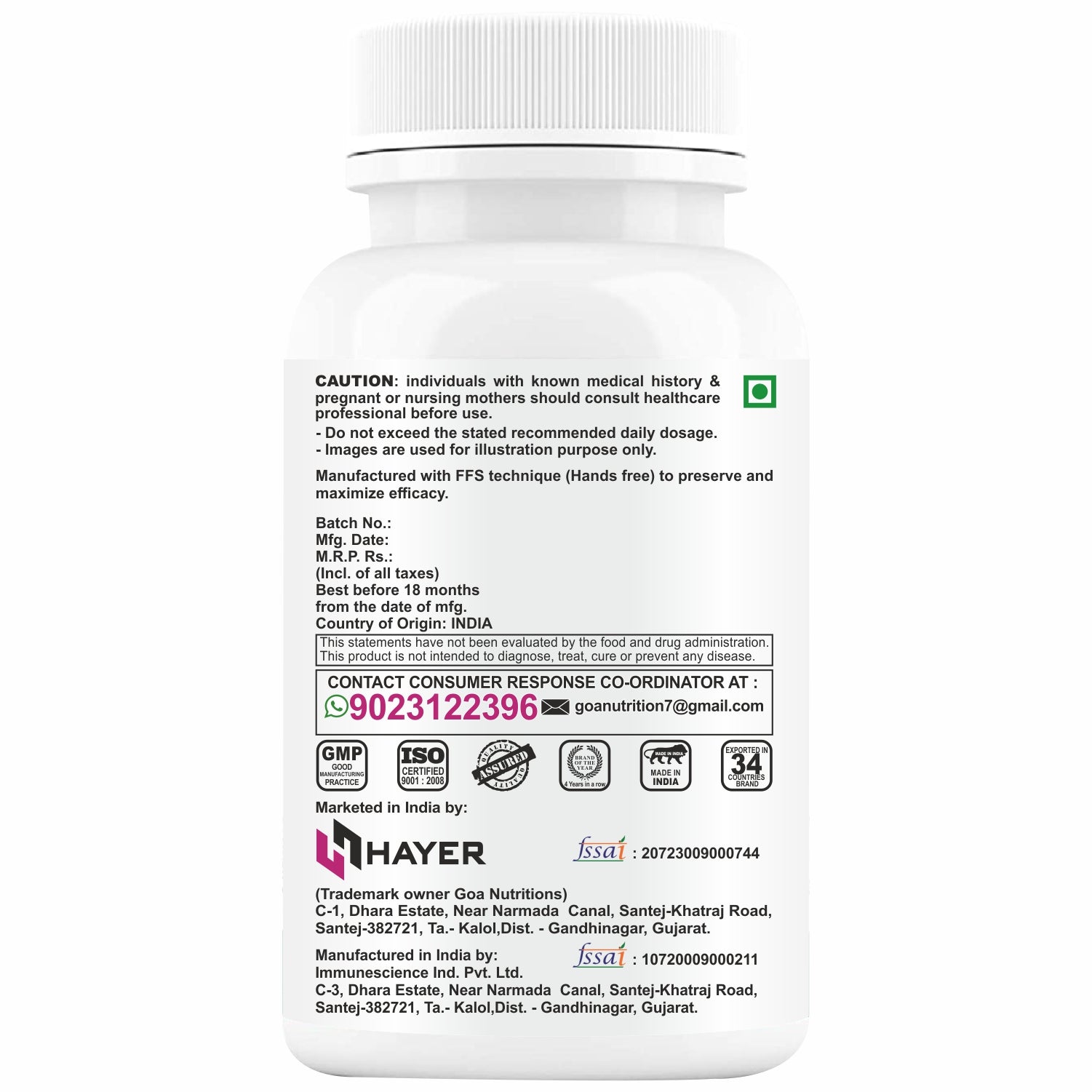 • Good Manufacturing Practices (GMP): manufactured in facilities that adhere to GMP standards to ensure quality and consistency.