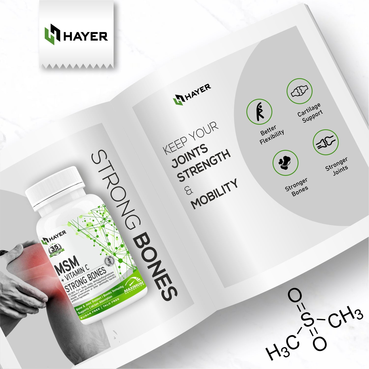 HAYER MSM (Methyl Sulfonyl Methane) Powder Supplements, Joint Support Supplement-60 Tablets